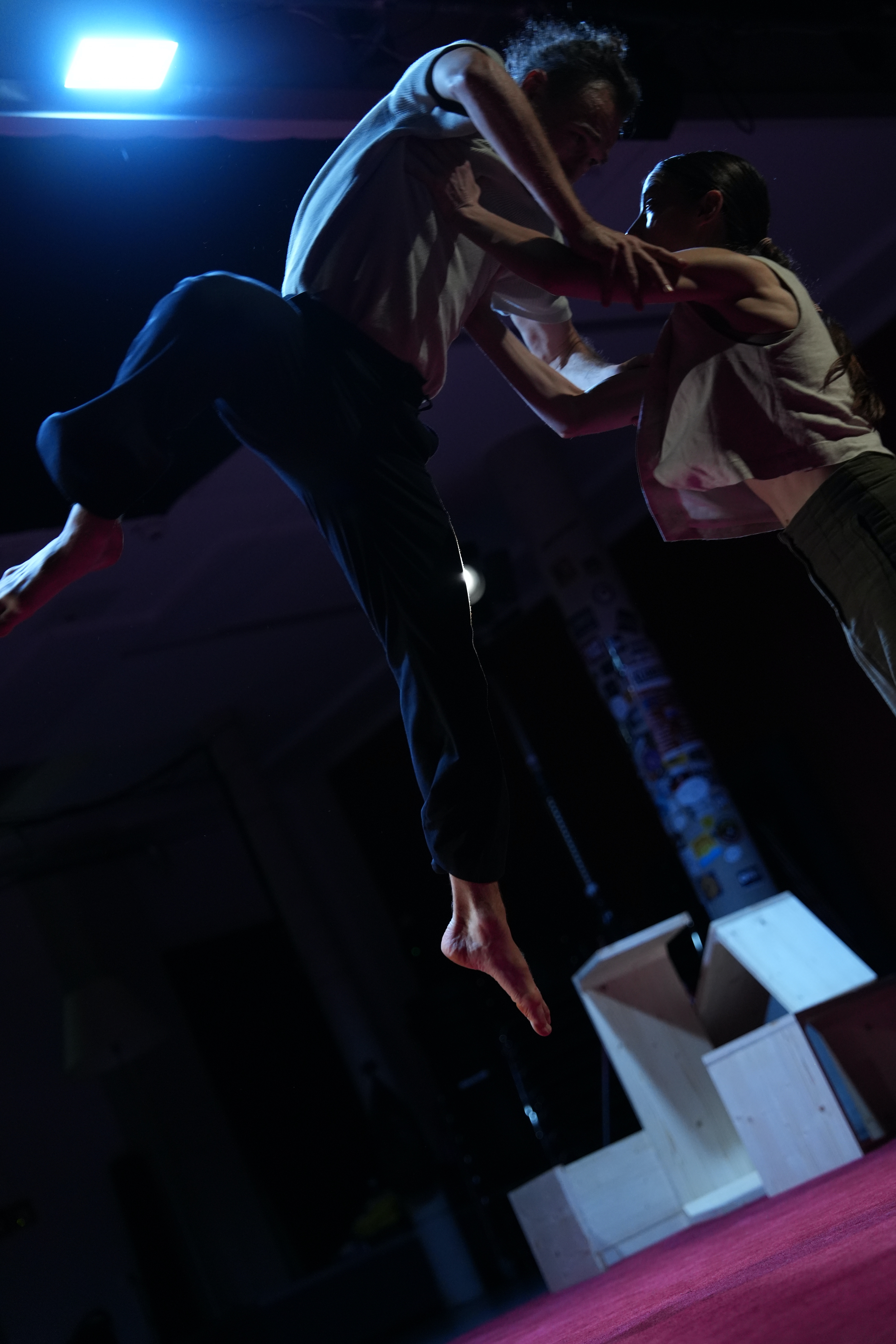 Nach einem sanften Warm-up teilen wir Auszüge aus unserer Forschung zu Methoden der Konfliktlösung mit euch und suchen durch Improvisation und spielerischer Praxis gemeinsam nach eigenen körperlichen Ansätzen. Neben dem Entdecken neuer Bewegungsqualitäten möchten wir erforschen, welche Rolle unsere Körper in Konflikten und bei deren Lösung spielen können.